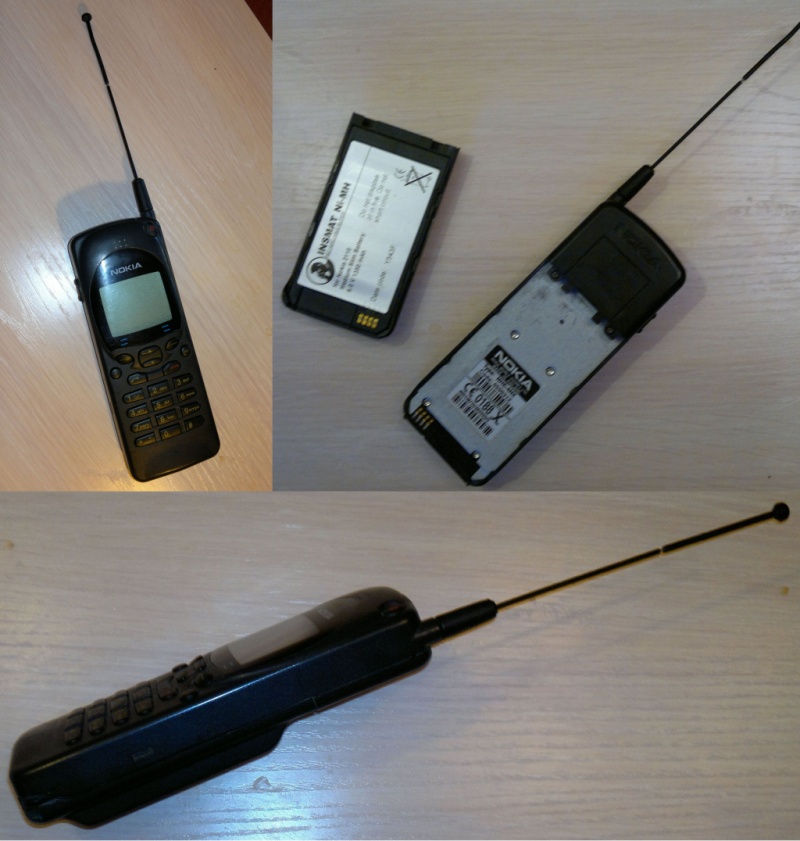 My first cellular phone was a Nokia Brick. Okay, so its official model was the 2110 (though I instantly got a photo of one when I typed “Nokia Brick” into Google). I also had the extended battery which, as you can see, very nearly doubles its thickness (and which, at four days, lasted twice as long as the original battery (and four times as long as my current smartphone’s…go figure)). It not only had an external antenna, but you had to extend it to get decent signal most of the time.