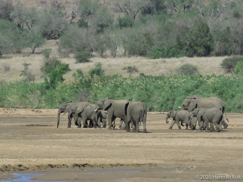Yep, an entire herd of elephant, easily three times as big as the earlier one, crossing the dry bed of the Black Umfolozi river. We sat watching them for probably ten minutes. Each time we thought that’s all of them, some more would come into view. It was an incredible sight.