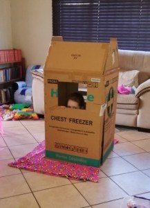 The minion is currently running a shop out of a freezer box in our living room selling various baked goods.